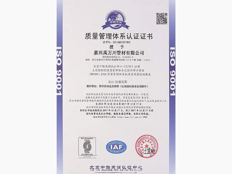 浙江宜萬川管材有限公司為國內領先的新型環保管道制造企業,隸屬于禹萬川股份第三生產基地,合計生產廠房占地62畝,擠出機生產線8條,注塑機生產線30臺,管道阻火圈生產沖壓設備35臺,年總生產能力達10000噸,年產值達2億元; 為迎合現代裝配式建筑的排水需求及環保靜音的設計理念,公司引進先進的生產設備及制造工藝,開發出裝配式溝槽卡箍連接(HDPE)超靜音抗壓排水系統、裝配式螺口法蘭壓蓋式承插柔性連接(HDPE/FRPP)新型管道系統、HDPE虹吸同層排水系統、HDPE波紋管、MPP電纜管、CPVC電力護套管、雨水回收利用系統等系列產品; | 產品以其裝配式、抗壓力、超靜音、抗沖擊、抗老化、耐酸堿、耐低溫、綠色環保、可循環利用等優點,迎合了現代建筑環保的設計理念和使用要求,符合國家“節能減排、以塑代鋼”的指導方針和政策,普遍受到設計單位及用戶的肯定和推廣; 作為一個成長中的創新型企業,公司以科學的發展觀及社會責任感為指導方針,以“質量第一 , 誠信護航 ”為經營理念 , 嚴 格 執 行ISO9001:2015的國際管理標準及CECS440:2016、CJ/T250:2007的行業標準,不斷完善產品結構,與廣大客戶同心協力、互惠互利,為現代化的城市建設作出應有的貢獻。 | ||