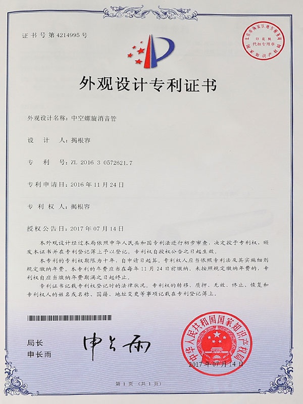 中空螺旋消音管和雙壁螺旋消音管,在具備HDPE實壁管的所有優(yōu)點性能外,進一步提高隔音效果,它比標準實壁管能降低8-10分貝,遏制了在污水排放過程中所產(chǎn)生的噪音,從而使您的居住環(huán)境更加溫馨、安靜。本產(chǎn)品為一種螺旋消音管,其特征在于管材內(nèi)壁上制有螺旋筋,螺旋筋呈直線斜向均布,并與消音管中心線的夾角為8-20,排水時,水流在螺旋筋的導流下,按螺旋筋的斜向直線延管材內(nèi)壁螺旋排出,不會對其內(nèi)壁產(chǎn)生較強的沖擊,因此噪音比較輕。